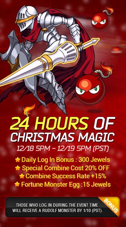 Bonus. Those who log in during the event time will receive a Rudolf monster by 1/10 (PST).